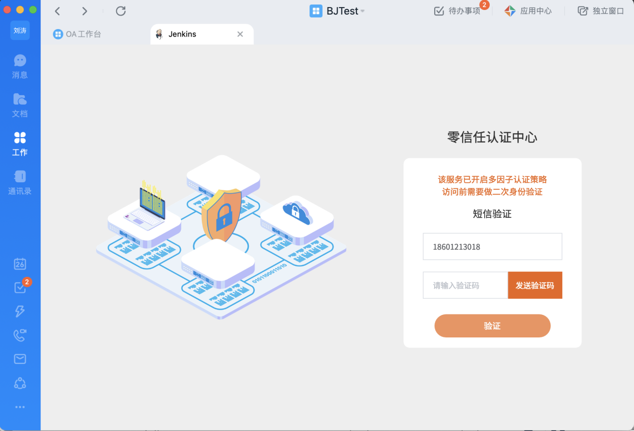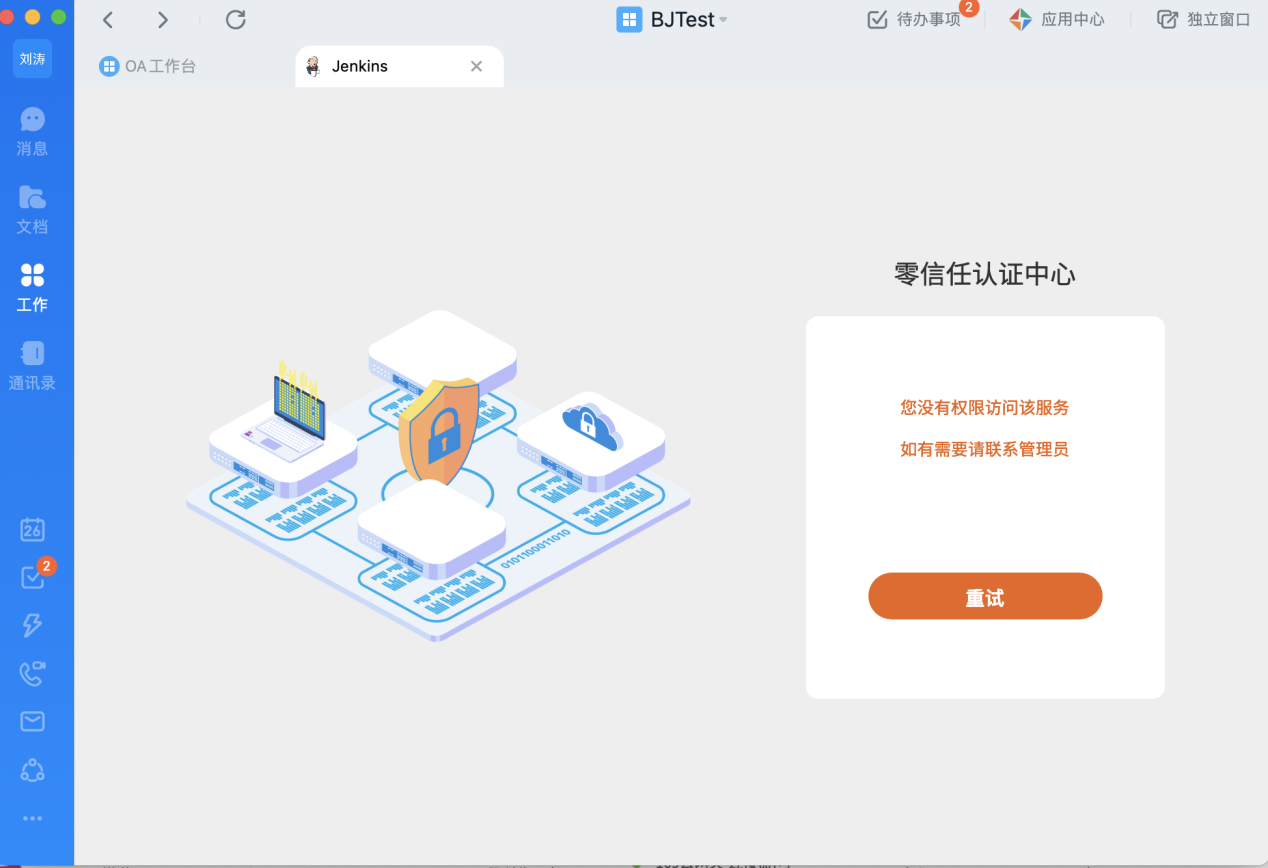 用戶登錄釘釘工作臺,看到的下面兩個應(yīng)用即為受零信任保護的私有部署Web應(yīng)用: