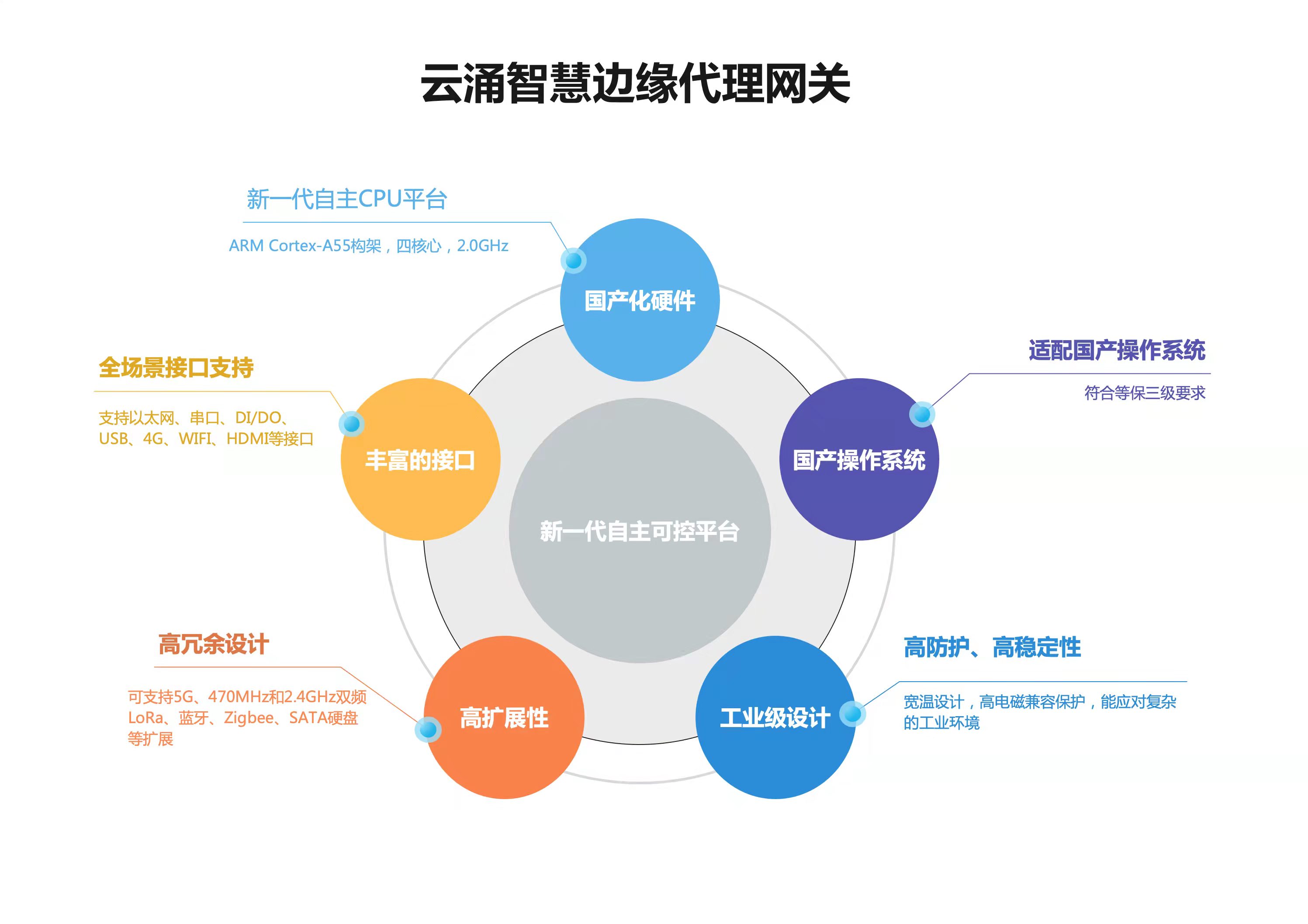 當今時代,隨著網絡信息數據量的大幅度提升以及5G技術的迅速發展,為更有效地處理實時數據,基于5G的邊緣計算技術應運而生,且有著廣闊的應用前景。而邊緣代理網關作為數據傳輸的關鍵設備,發揮著協議轉換和數據處理的重要作用,為更好地適應復雜惡劣的工業環境,保證現場通訊的穩定安全,云涌科技推出新一代智慧邊緣代理網關。