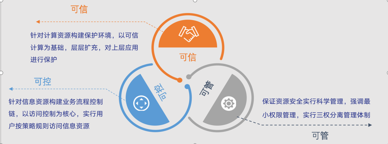 ? ? ? 平臺從操作系統安全的角度出發,以可信計算為基礎、訪問控制為核心,圍繞“可信、可控、可管”三個維度構建服務器主動防御體系,從源頭上保證服務器安全。