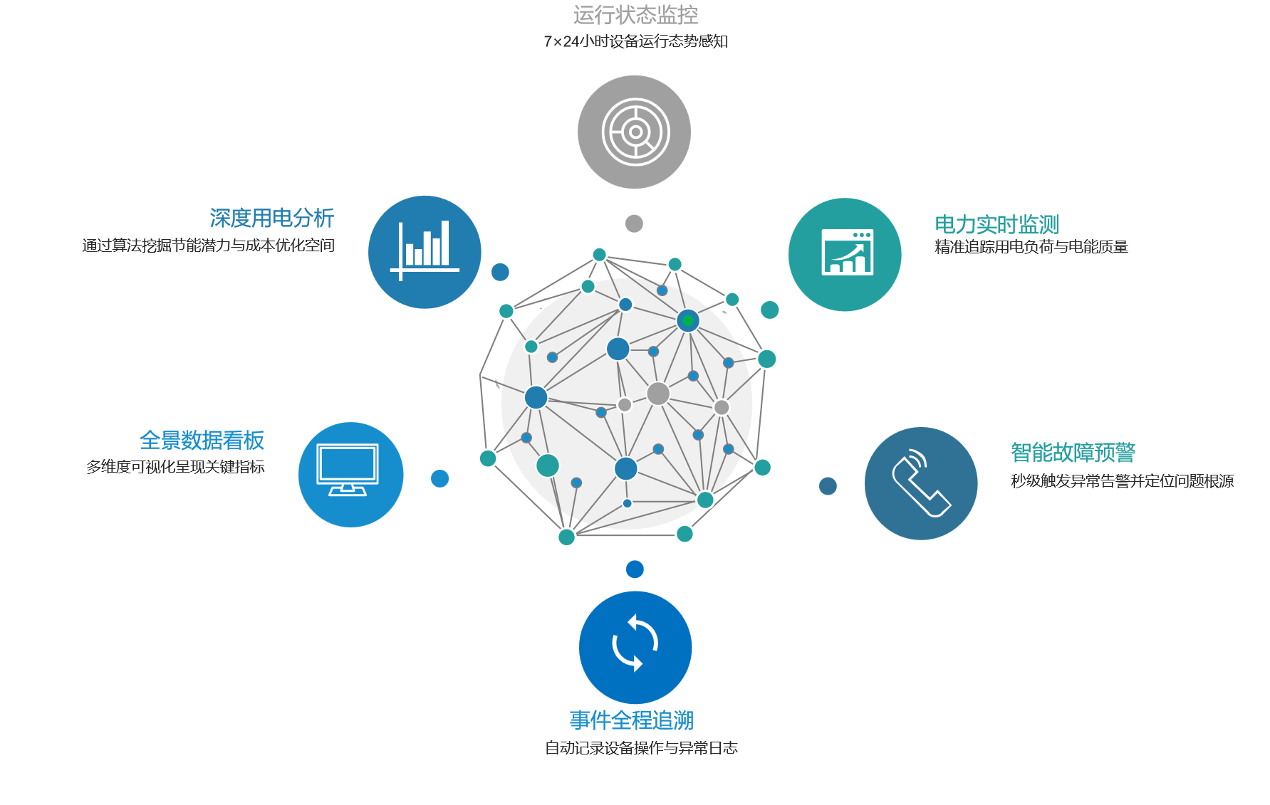 - 智慧能效管理——提供“綜合能源管理云平臺(tái)”,實(shí)現(xiàn)電能數(shù)據(jù)的自動(dòng)化采集與可視化,支持用能效率的精準(zhǔn)分析、節(jié)能潛力的深度挖掘及電能質(zhì)量的全面診斷,助力精細(xì)化能源管理。