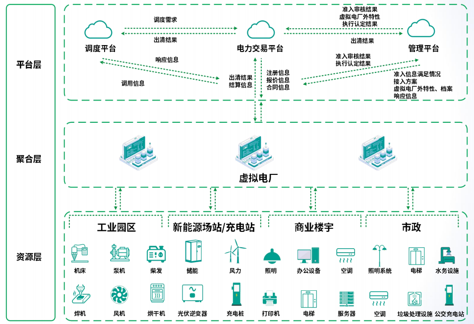 公司是泰州“首家”完成虛擬電廠注冊的企業(yè),虛擬電廠作為一種智慧能源管理系統(tǒng),被稱為能源產(chǎn)業(yè)鏈的“最后一公里“,其核心是將分布式的發(fā)電設(shè)備、儲能系統(tǒng)、電動汽車、可調(diào)節(jié)負荷等資源聚合起來,通過智能算法和通信技術(shù)統(tǒng)一調(diào)度,使其能夠像傳統(tǒng)發(fā)電廠一樣參與電力市場交易或響應電網(wǎng)需求,從宏觀層面上,實現(xiàn)能源的高效利用和電網(wǎng)穩(wěn)定運行。